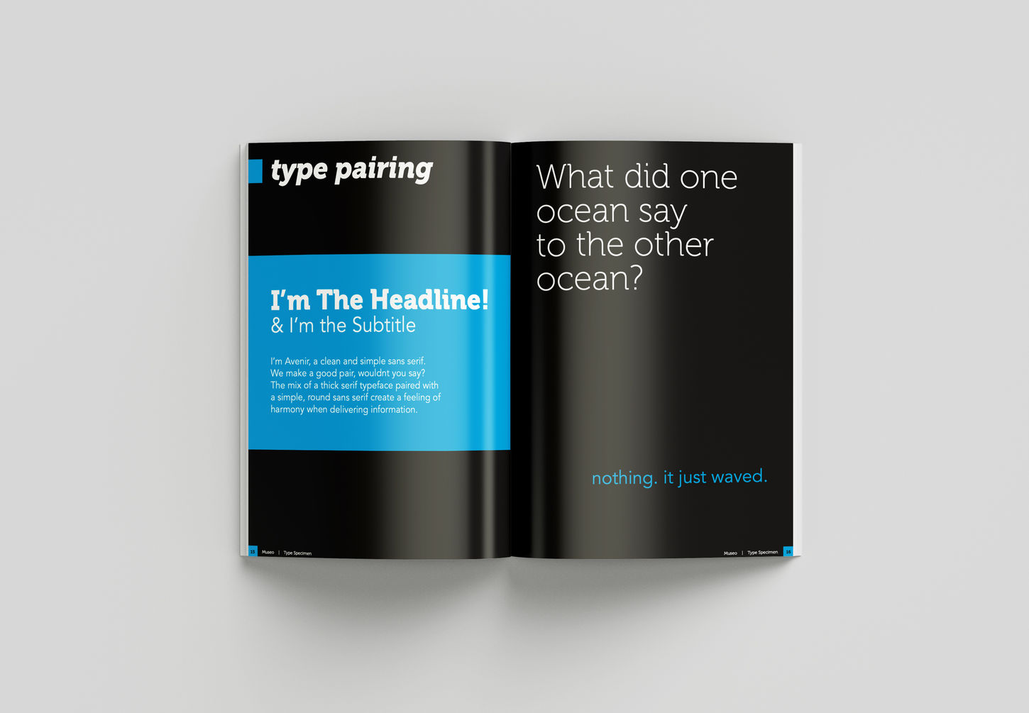 The Museo type specimen booklet showcases the modernity, flexibility, and decorative elements of the typeface while highlighting how it can be used both ornamentally and informatively. From start to finish, the book shows all the small nuances and details of the typeface that aren’t usually seen when printed at a small size.